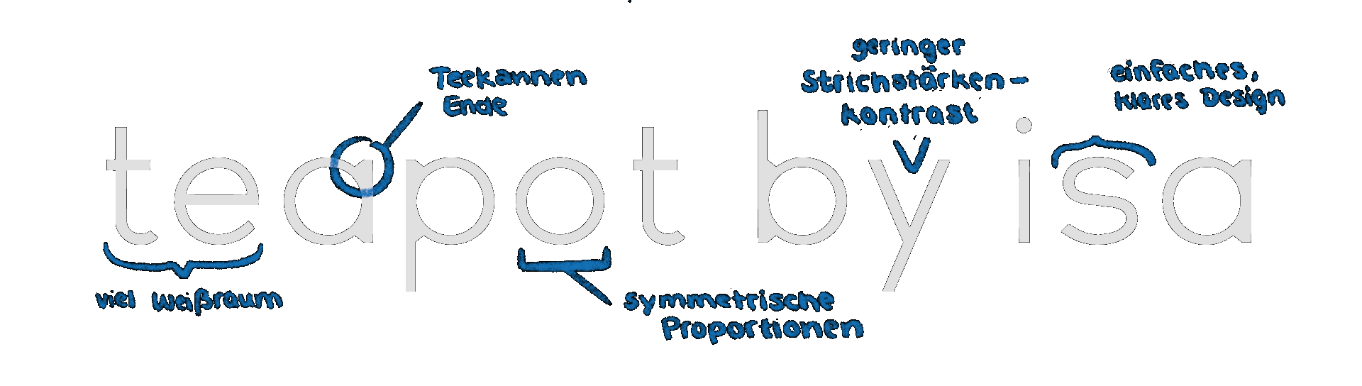 isans – Sans Serif Font 2023 Im Schriftentwurfkurs meines 5. Semesters sollte eine Sans Serif Font gestaltet werden. Die »isans« zeichnet sich durch geometrische Formen und individuelle Ecken aus. Zur Visualisierung der Font in verschiedenen Anwendungsbereichen habe ich die fiktive Tee-Marke teapot entwickelt, mit einem anskizzierten Corporate Design. In diesem Szenario wird die »isans« als Hausschrift genutzt und mit ihr entsprechende Formate aus der Produkt-Palette gebrandet.